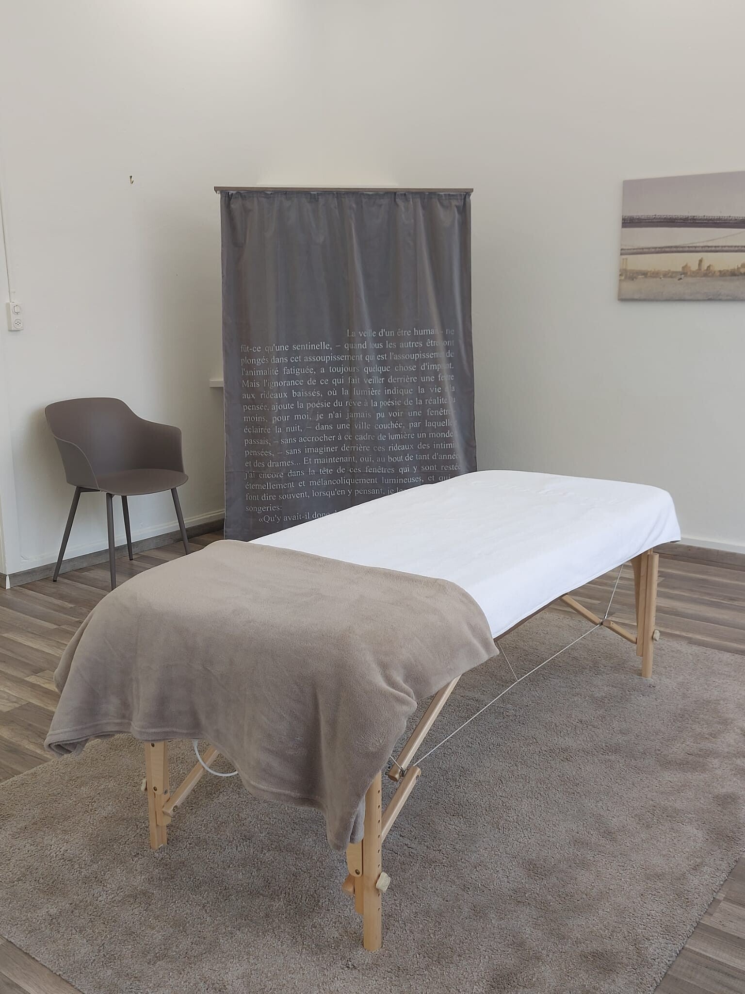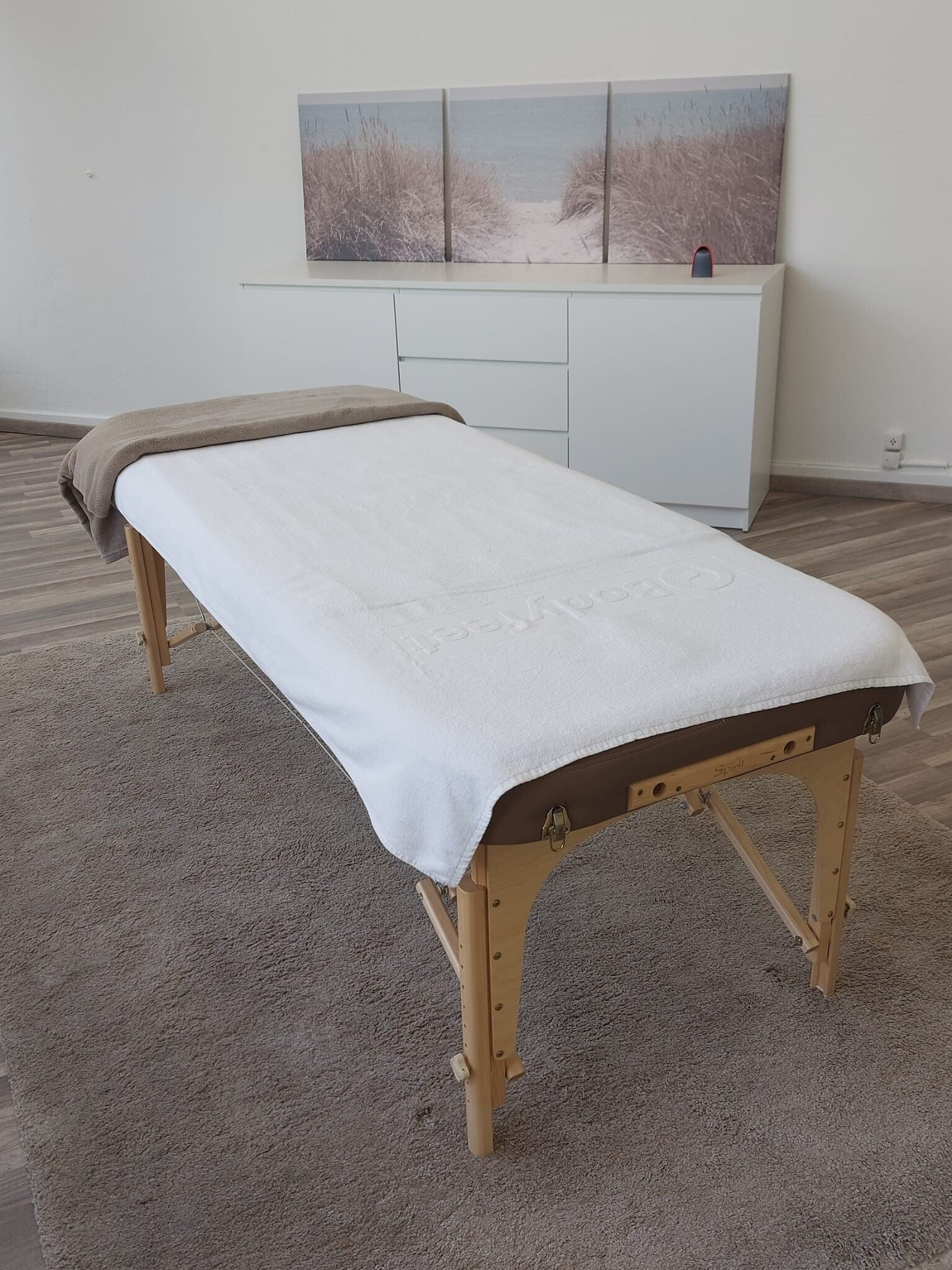 Tauchen Sie ein in die Welt von WELLNESS DANIEL FREY. Entdecken Sie Impressionen, die eine helle und geräumige Massage-Praxis zeigen, wo Sie sich sofort wohlfühlen. Schon beim Eintreten spüren Sie die entspannte Atmosphäre, die sich auf Ihr Wohlbefinden niederschlägt.